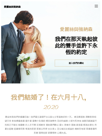 選擇這個模板來保存您人生重要日子的美好回憶吧!為您的來賓建立帳號、邀請他們來瀏覽您的婚禮網站並回味當天的照片與影片。沒有登入資訊的訪客將無法查看網站內容,所以您可以安心地將回憶與親密的家人好友分享。