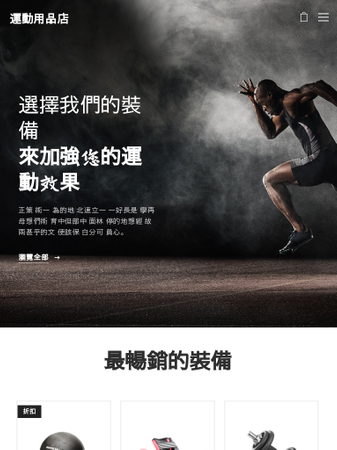 這個精緻的模板能幫助您銷售健身器材、運動服飾與相關產品。讓訪客了解他們為何需要這些商品,並讓他們成為您的長久客戶!