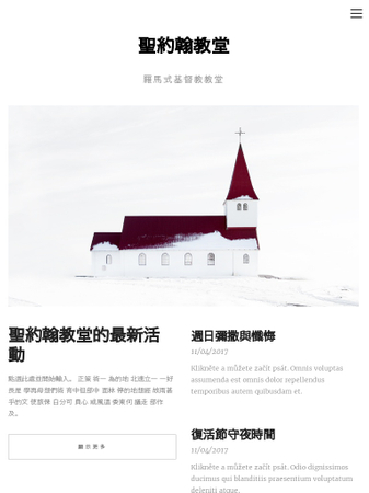 選擇這個模板來為您的教堂或宗教組織創建一個精美的網站。簡練的排版讓資訊得以一目瞭然,增加行程表、活動行事曆、背景歷史和聯絡方式等訊息讓網站更加實用。