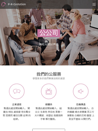 此模板適合公關機構、行銷公司及營銷專家。用完美雕飾的文字來吸引新顧客、展示您顧客的滿意回饋並分享您的故事。