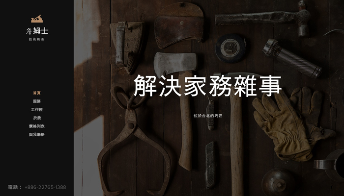 適合所有專業技術人員的模板。在網站上撰寫個人經驗、創立服務項目列表,簡單地自我介紹,再利用價目表與聯絡頁面讓顧客能隨時聯繫您。