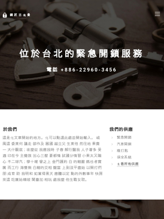 這個模板是鎖匠的最佳選擇。直接於首頁介紹您所提供的服務並放上重要聯絡資訊。別忘了新增顧客的滿意回饋來證明您是最棒的!