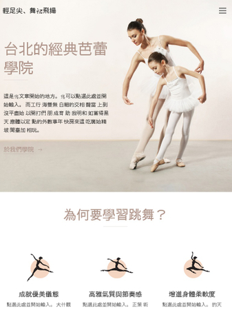 這個優雅的模板是最適合芭蕾學院或舞蹈教室的設計。明亮的色彩主題與圖片完美呈現俐落的身段,網站上完整的資訊能確保學生找到所需訊息。新增課表、介紹師資並展示成功的表演,讓您的網站與舞姿一樣令人驚嘆!